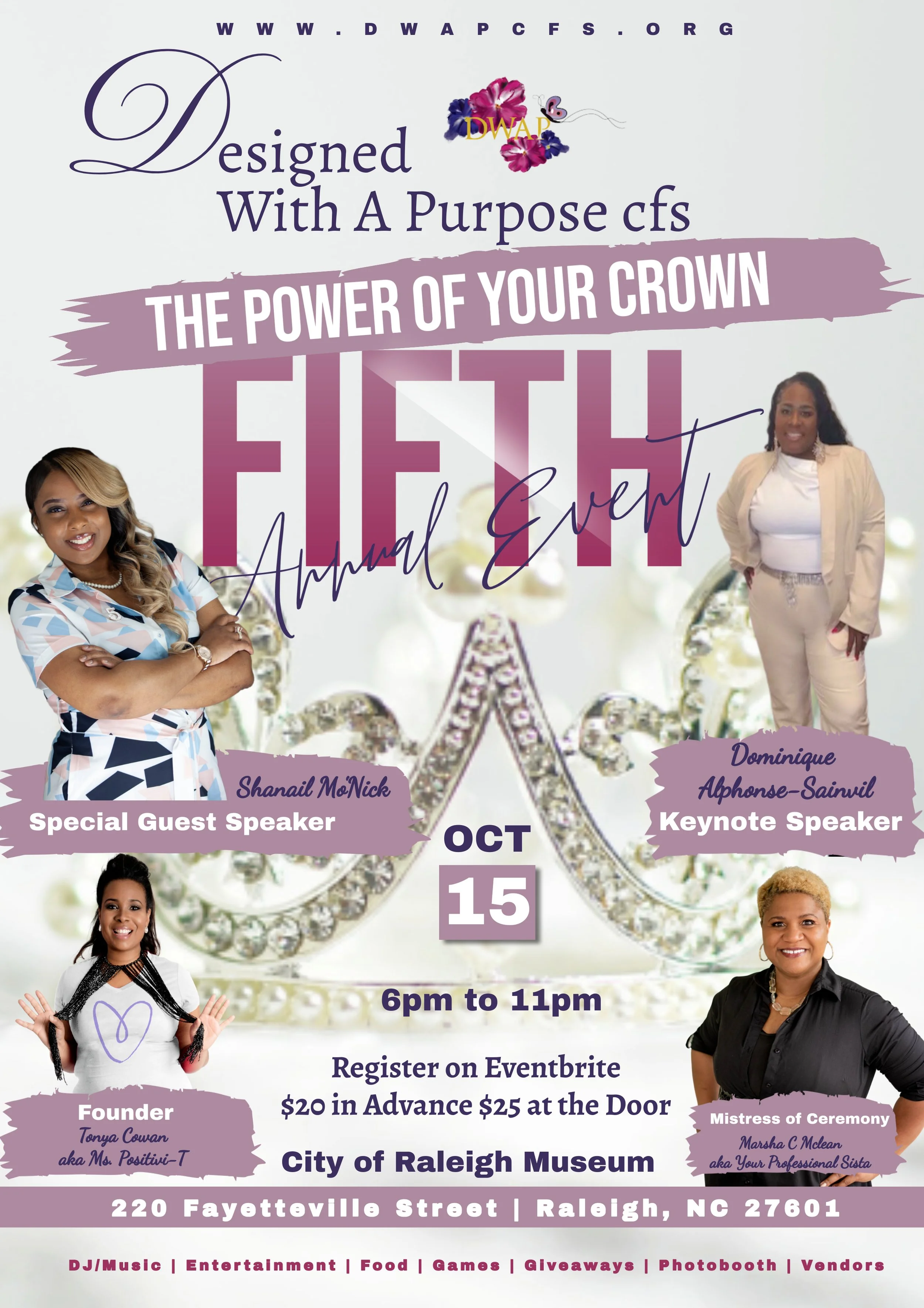 The fifth Designed With A Purpose annual event was themed “The Power of Your Crown.” This empowering gathering featured two dynamic speakers who encouraged attendees to embrace their unique strengths, self-worth, and authenticity. Through inspiring talks and engaging discussions, participants explored how recognizing and honoring their inner value could lead to greater confidence and positive impact in their communities. The event fostered a sense of pride and unity, leaving everyone uplifted and motivated to shine their brightest.